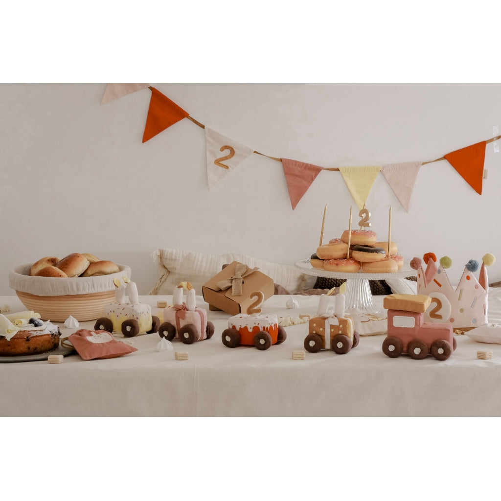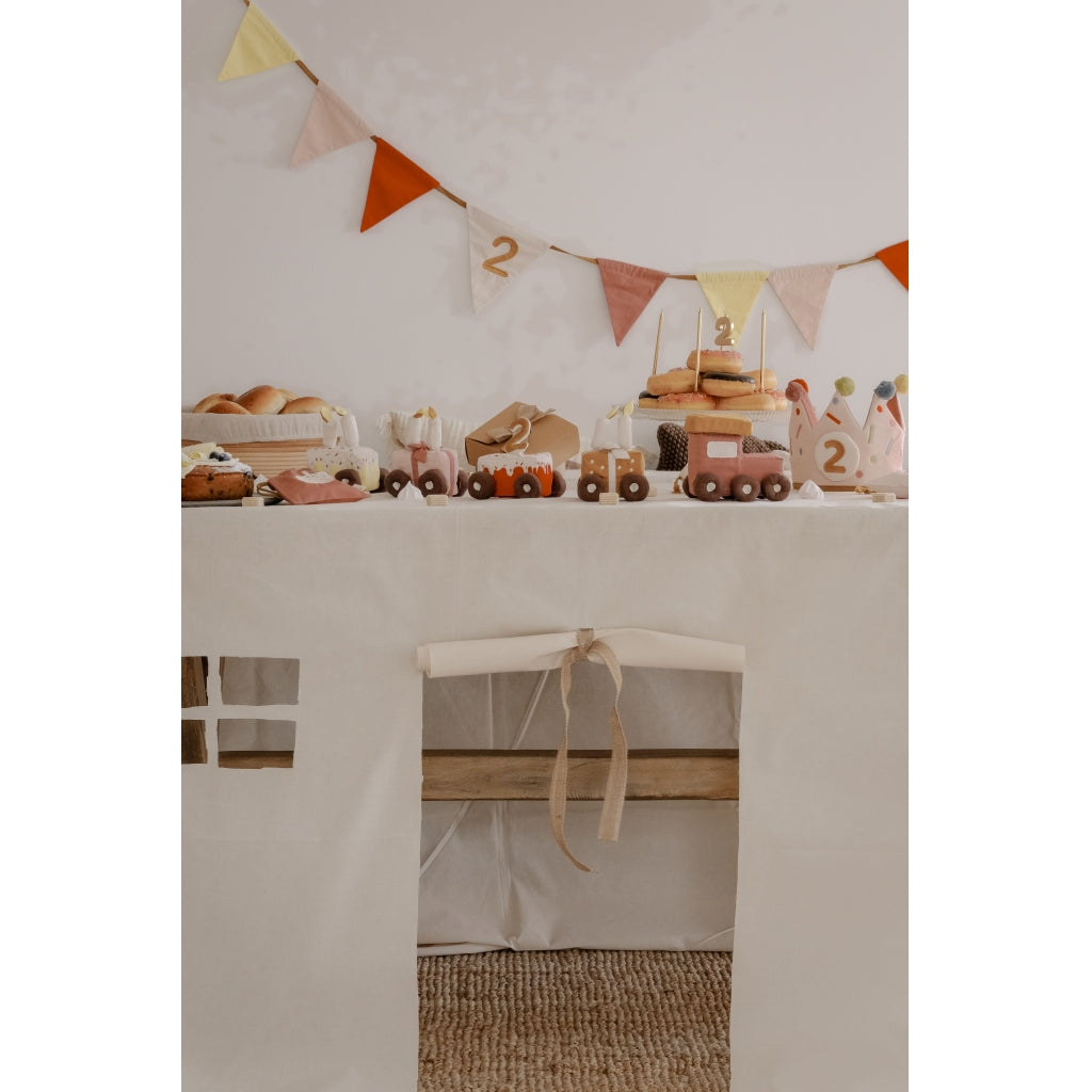 Fabelab’s Garland – Celebration Rose Mix comes in a soft blend of rose, light pink, cream and pale yellow tones. With eight fabric flags and a replaceable number flag (1–9), it’s made to mark birthdays with sweetness and style.