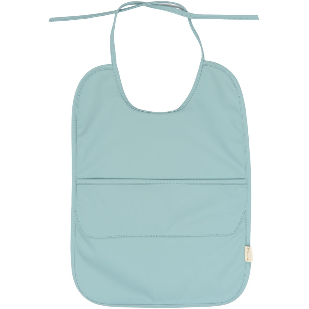 The PU coating makes the bib durable and easy to wipe clean, while the front pocket helps catch food and spills. Adjustable neck straps ensure a comfortable fit.
